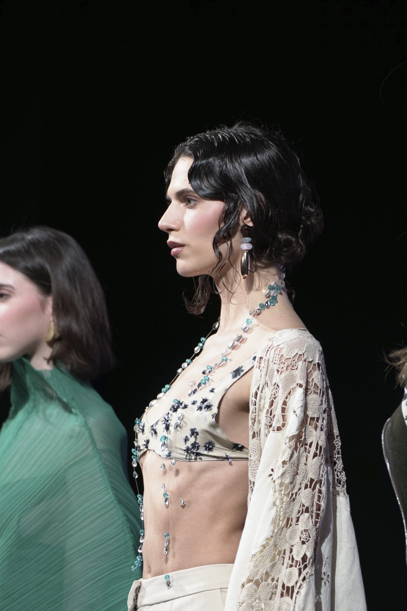 Nelle acconciature, curate da Ilenia Scalinci e Matteo Filibeck, la bellezza si rivela nell’armonia sottile che sceglie di non eccedere, dove il dettaglio diventa puro splendore. Un’eleganza che non svela mai completamente i suoi segreti ma, come il mare, li custodisce tra riflessi e profondità invisibili.