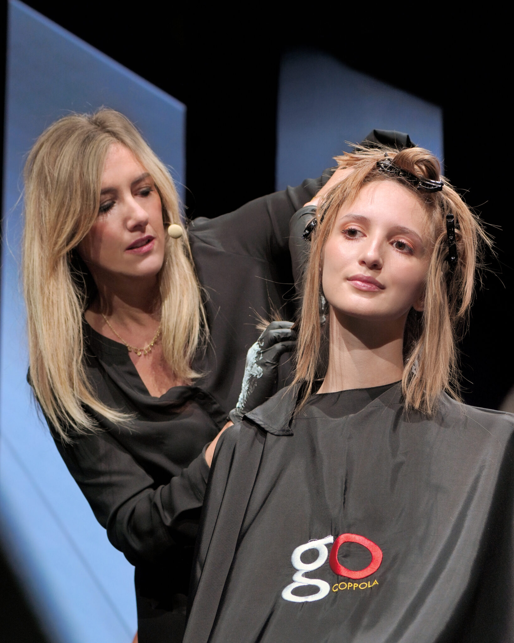 Mauro Situra, Melania Severgnini e Roberto Farruggia hanno interpretato la filosofia GO Coppola sul palco: tagli e colori realizzati con l’accessorio Bridge e acconciature dallo stile raffinato e contemporaneo.
