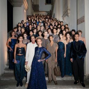 Tra geometrie caleidoscopiche, dettagli brillanti e fantasie che incantano e seducono, il team The Agency Aldo Coppola, guidato da Roberta Bellazzi per l’hairstyle, ha realizzato acconciature glossy, raccolti impreziositi da accessori brillanti ed esaltato texture morbide e delicate in un connubio perfetto con le creazioni sartoriali di Giorgio Armani.