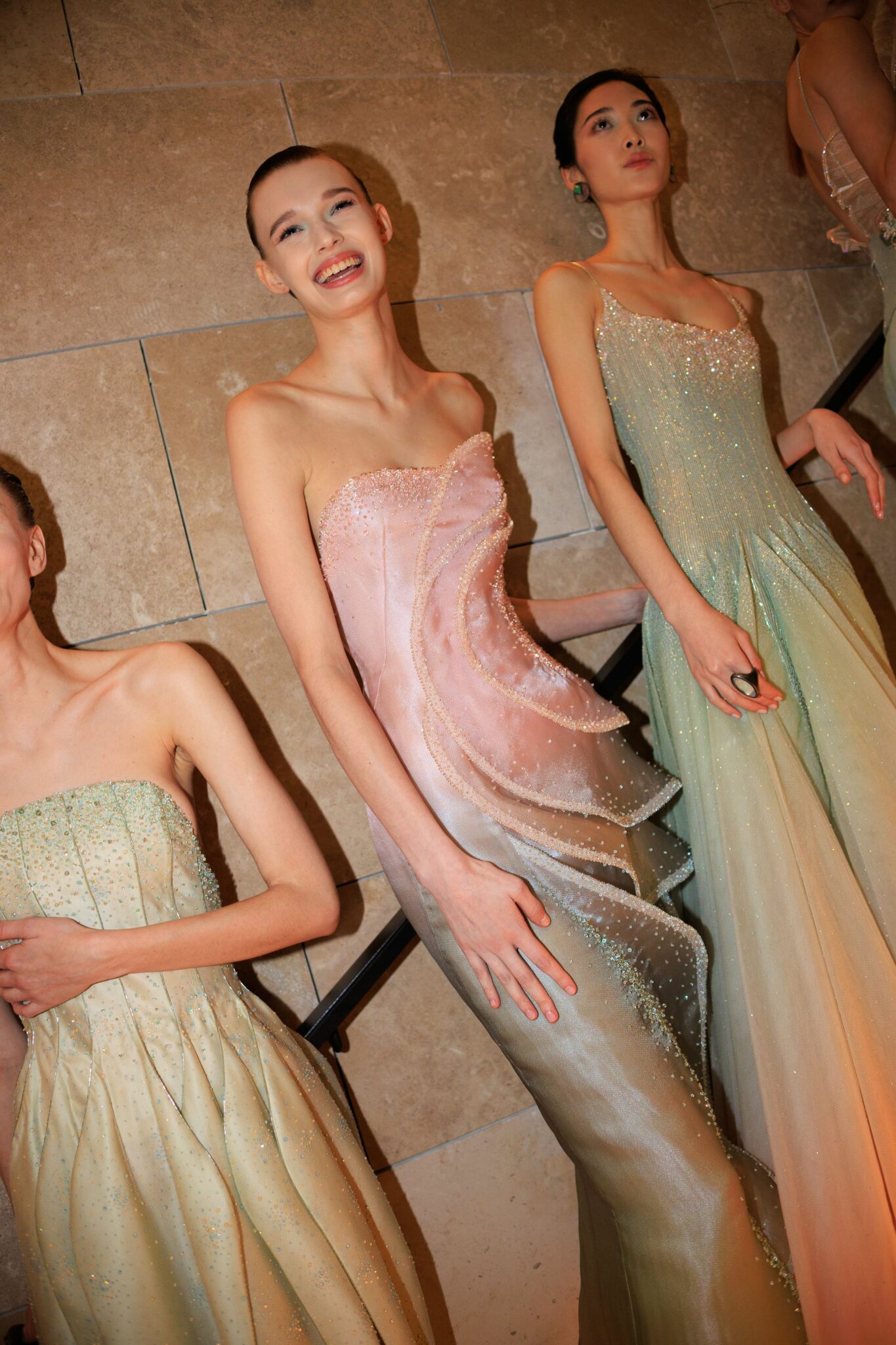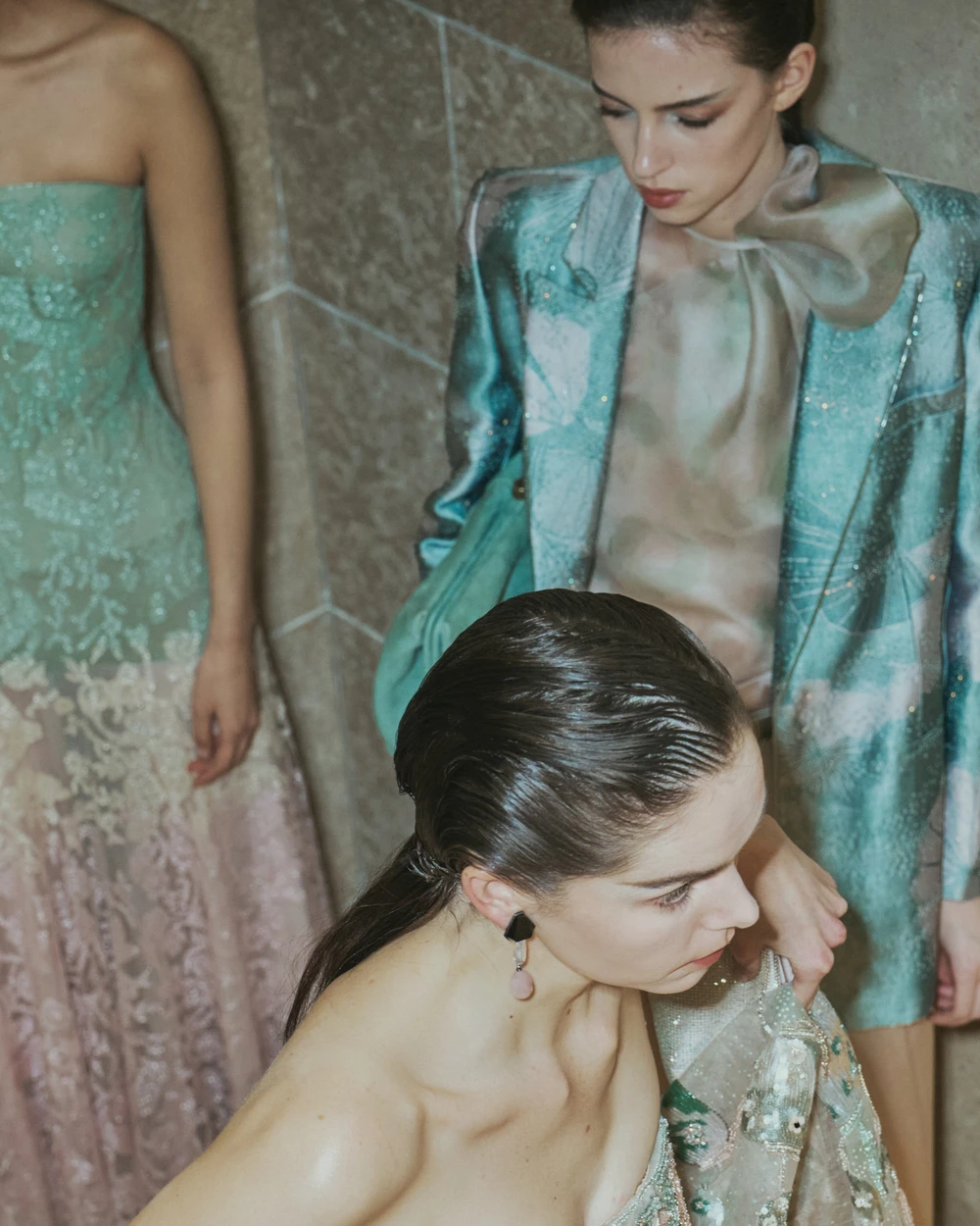 A completare la visione di Armani Privé, è il tocco creativo di Roberta Bellazzi per The Agency Aldo Coppola. I capelli diventano protagonisti della passerella: fluidi, luminosi e leggeri, scolpiti con armonia per accompagnare ogni movimento della silhouette. Raccolti raffinati e texture delicate ricordano boccioli appena sbocciati, mentre riflessi verdi e sfumature naturali richiamano la pietra preziosa da cui la collezione trae ispirazione. Ogni dettaglio è studiato per evocare equilibrio e leggerezza. Gli hairstyle, minimalisti e contemporanei, amplificano la sensazione di una femminilità eterea e sofisticata, perfettamente coerente con la fluidità e l’eleganza senza tempo.